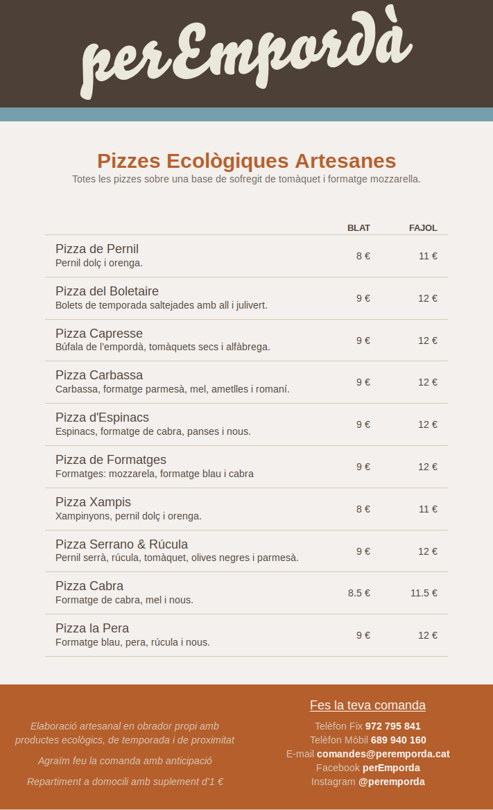 Elaboramos alimentos artesanales, ecológicos y de proximidad, pastas frescas y pizzas a domicilio.